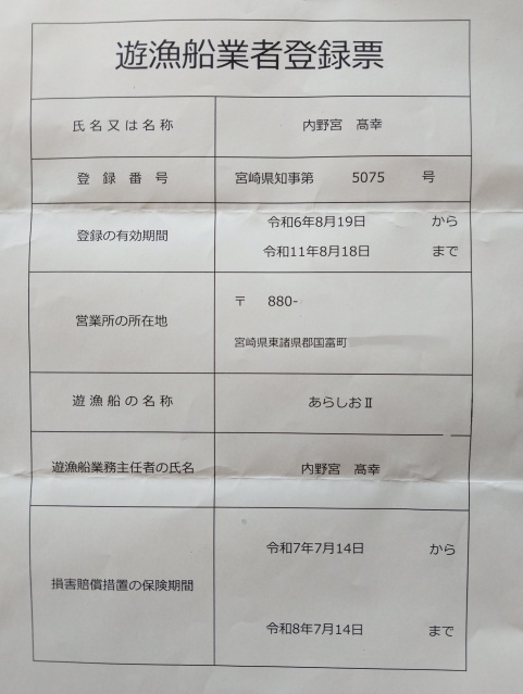 悪天候で、出港出来ない日が多かった一年間でしたが